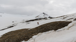 This is not the first time we've been to Svalbard and a couple of Svalbardians from about 15 years ago booked one of our guest bedrooms for a week. Besides sight seeing and shopping, some of the Classic Routes were re-done. The skiing did not work out that well: a binding broke exactly at the moment before the skier would have launced himself downhill in the soft summer snow...